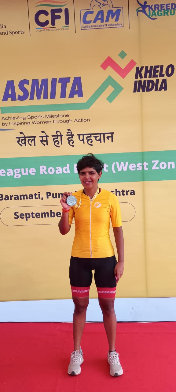 Miss. Yogeshwari Mahadev Kadam M SC 1st Secured Silver Medal in Khelo India Cycling Competition